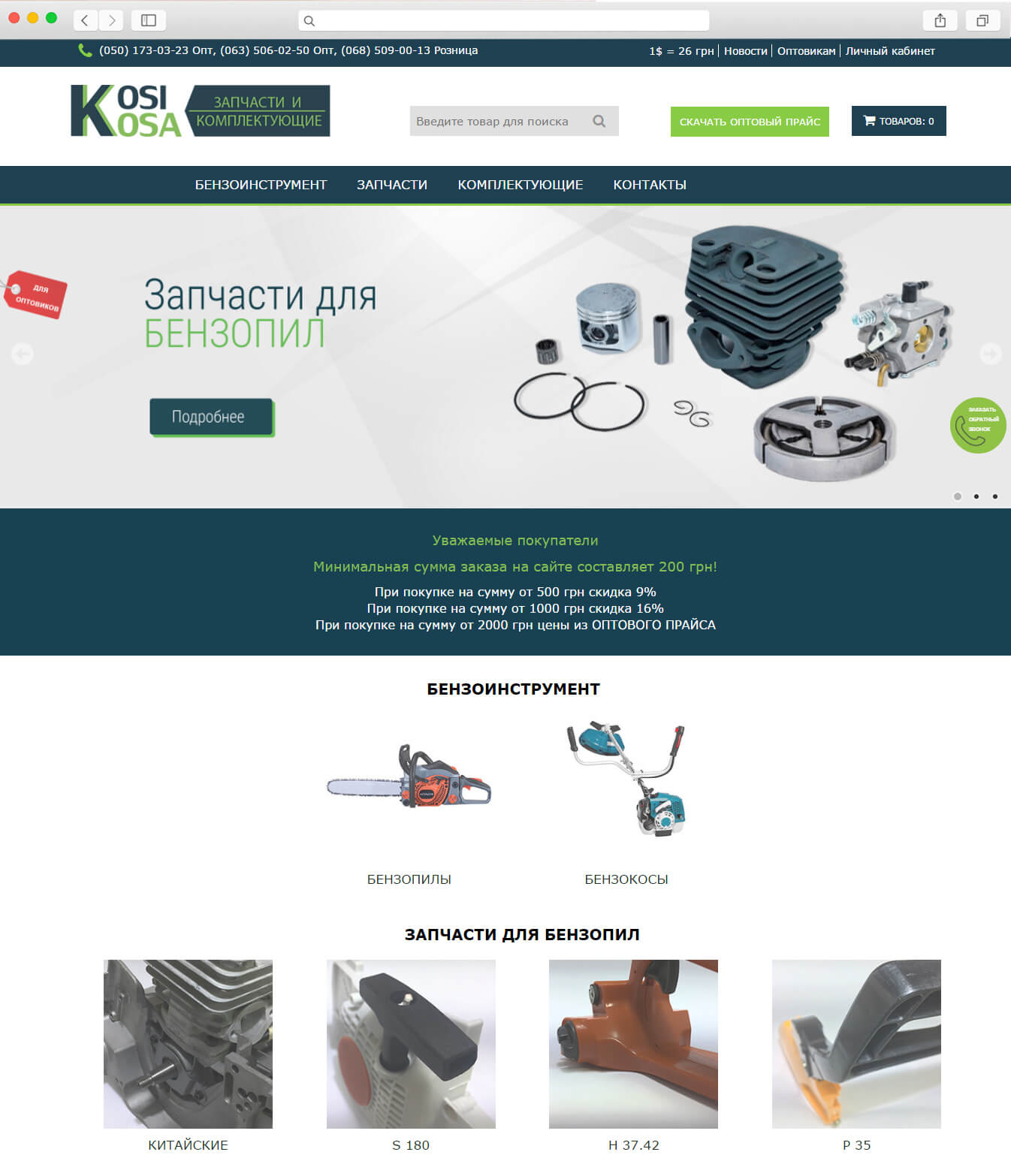 Коси Коса — крупный интернет-магазин бензоинструмента и комплектующих к нему.